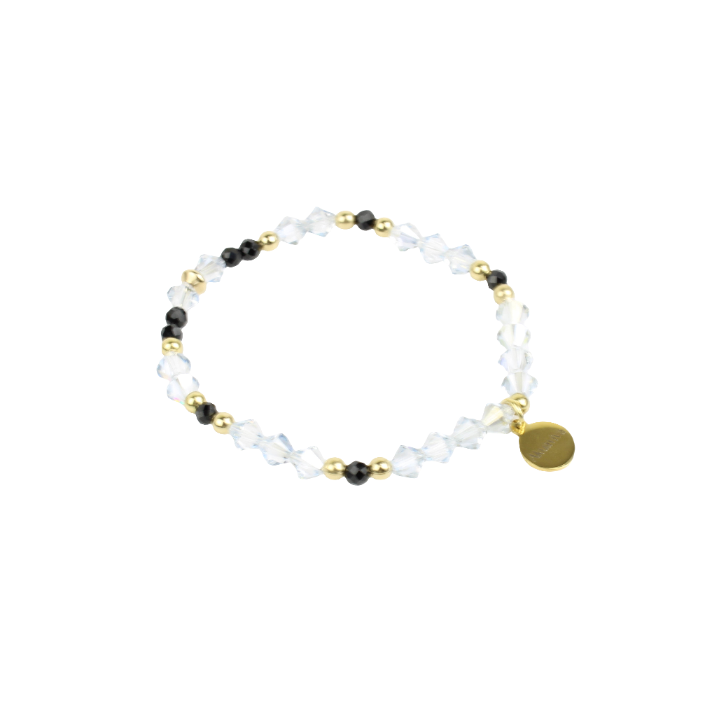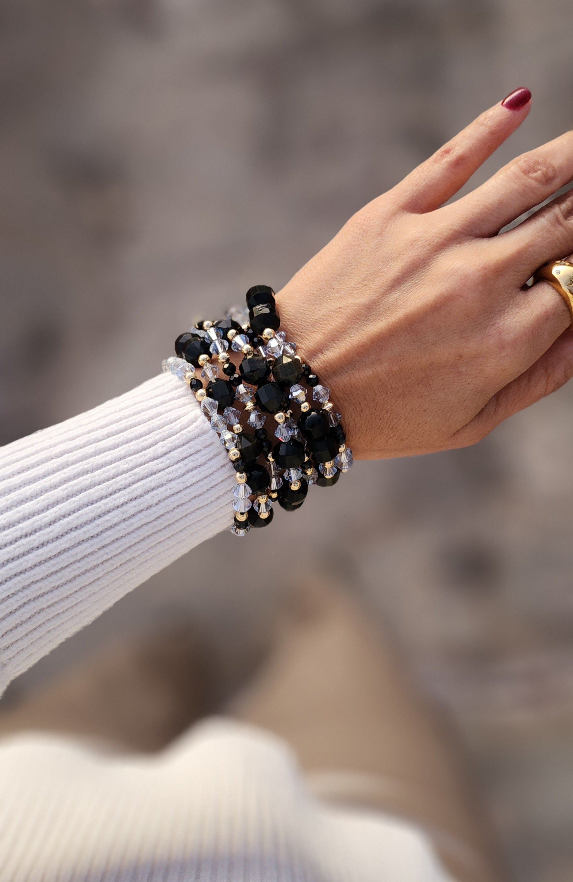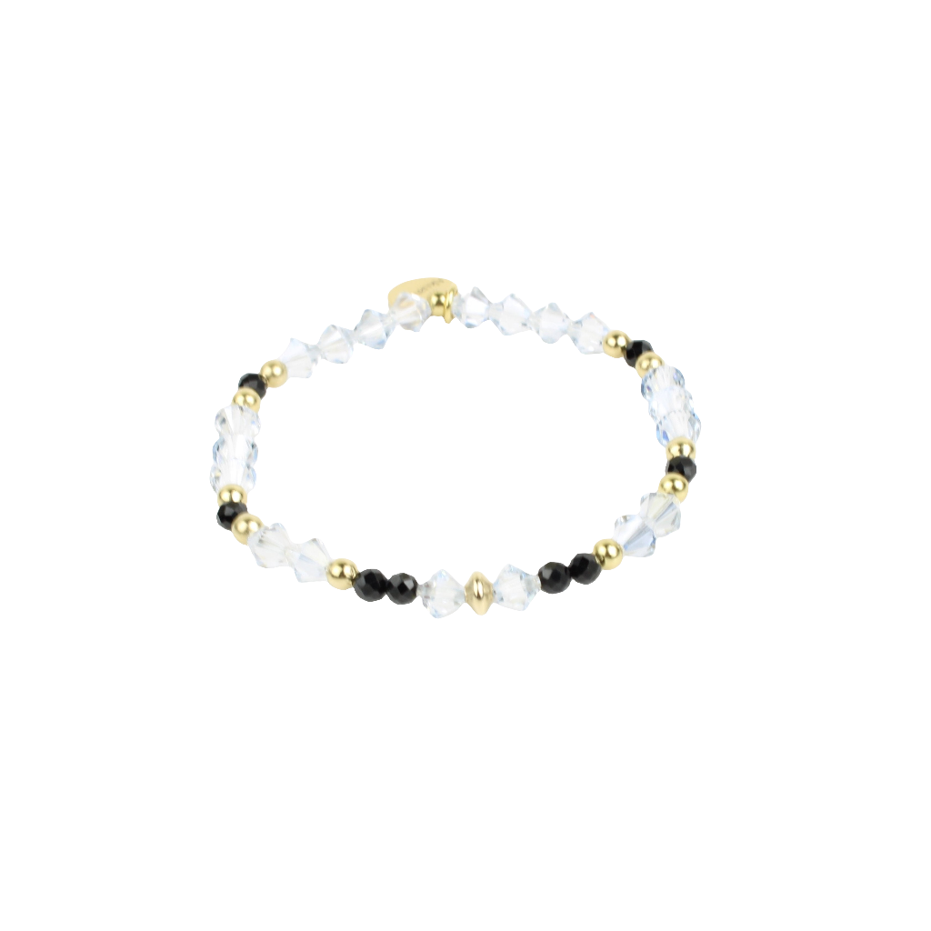 A beautiful and unique piece of jewelry that combines the elegance of Swarovski crystals with the grounding of Black Spinel stone.
