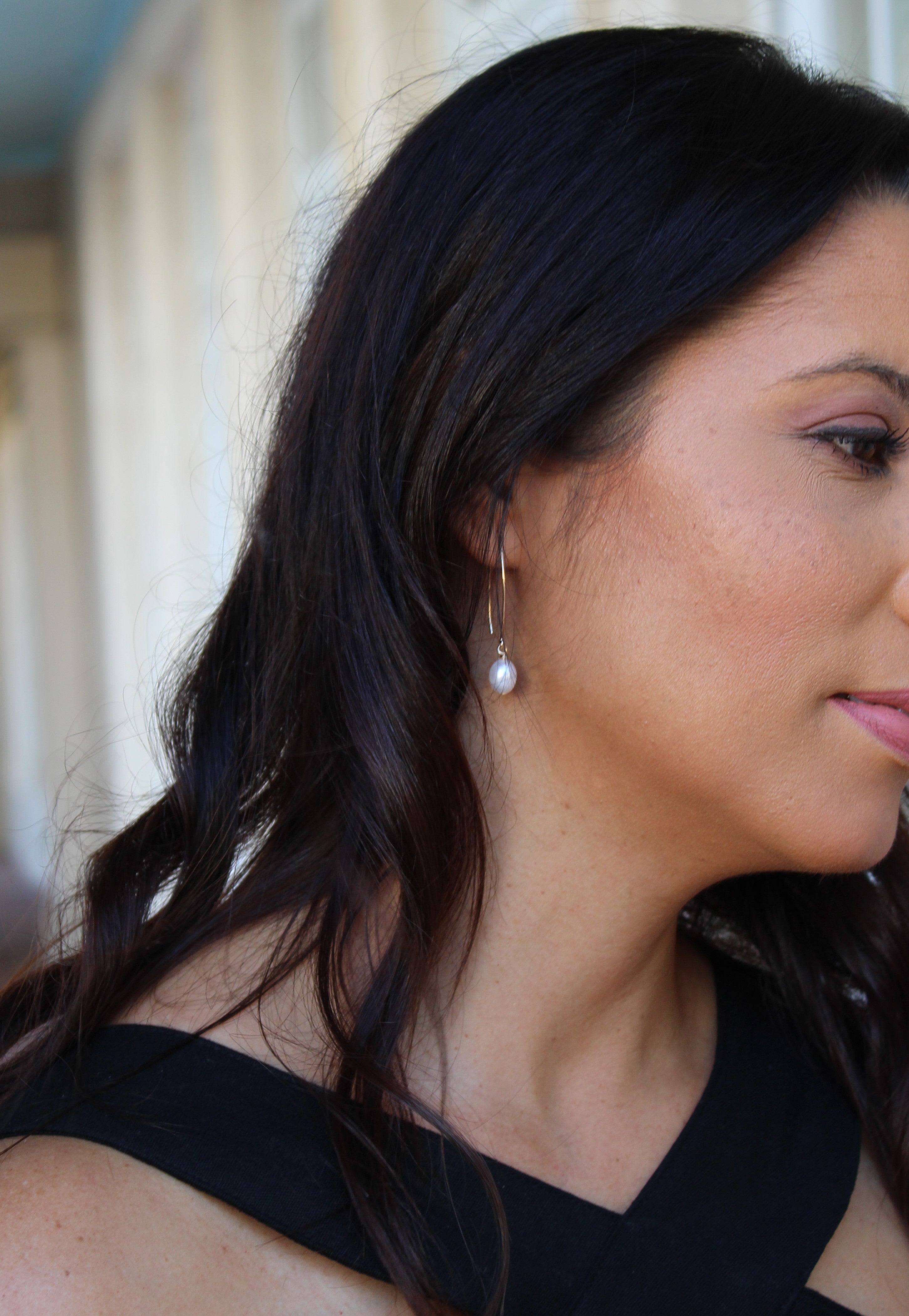 Versatile and danty gold earrings is sure to become one of your go-tos in your accessories collection. Feature a lovely freshwater pearl that catch the light beautifully and add chic movement when worn.