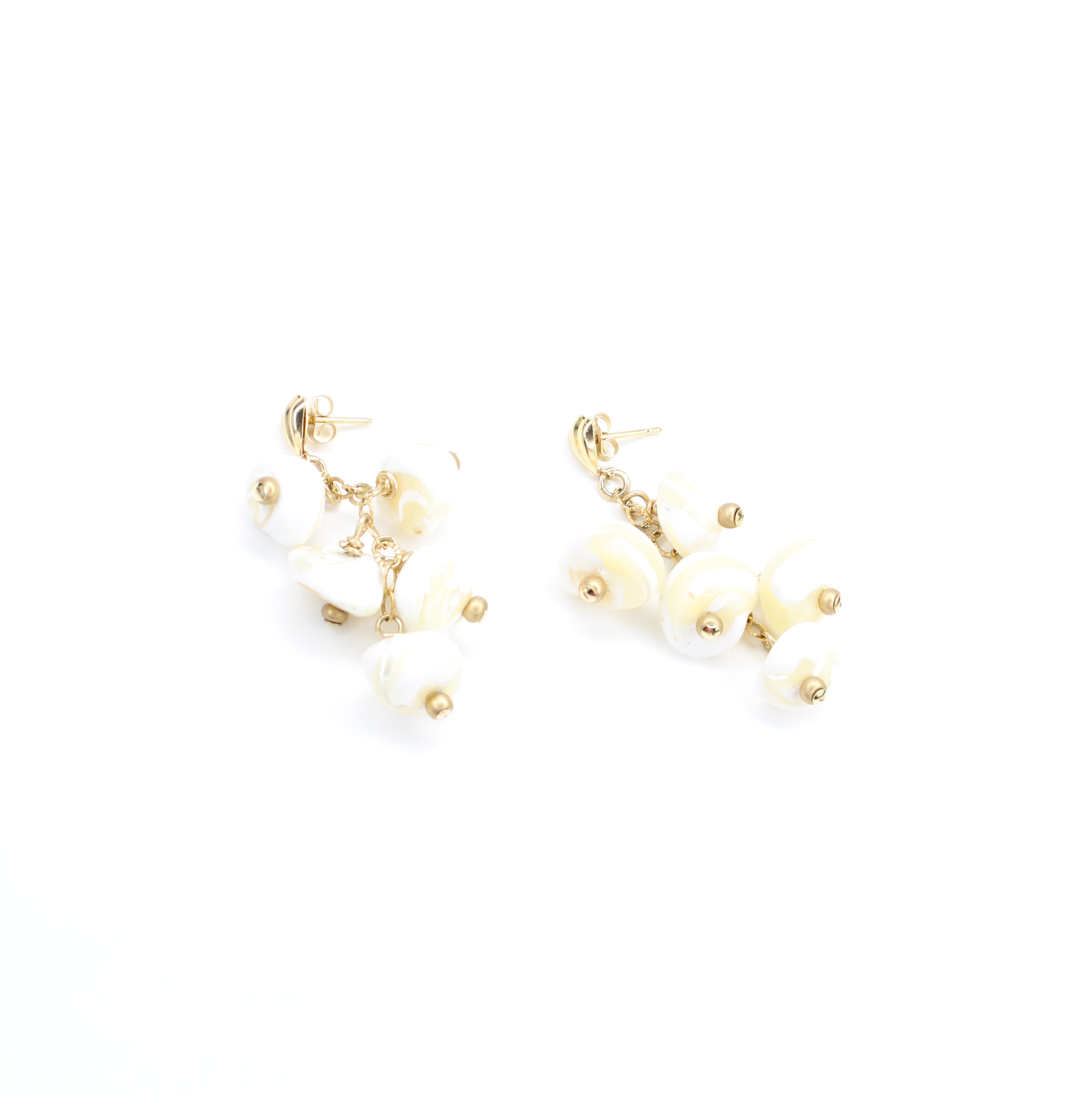 Own your brilliance. Shine like the ocean waves. Inspired by the serene glow of ocean waves, these exquisite earrings feature luminous white Mother of Pearl, delicately set in shimmering gold, reflecting the beauty of sunlit shores.