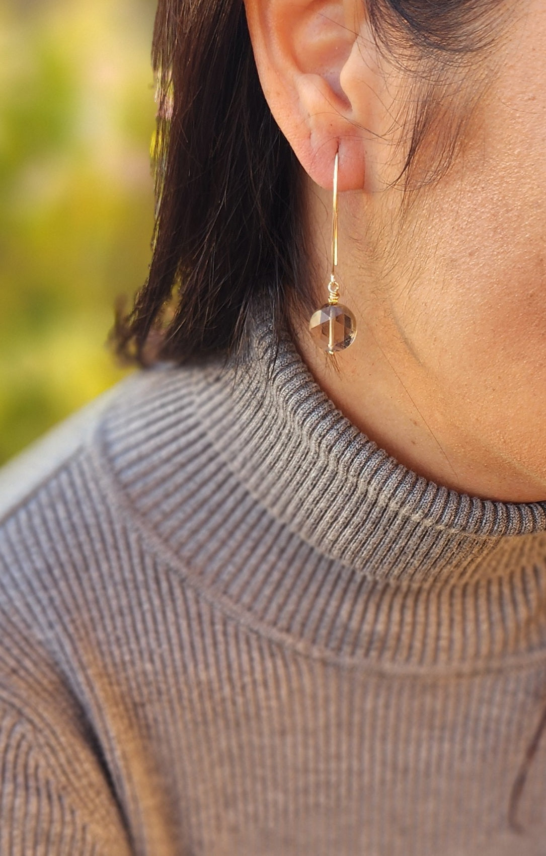 Elevate your jewelry collection with these elegant Smoky Quartz dangle earrings. These earrings feature a rich, translucent hue that exudes sophistication and understated beauty. The warm, earthy tones of the smoky gemstone pair effortlessly with any ensemble, from casual daywear to evening elegance.