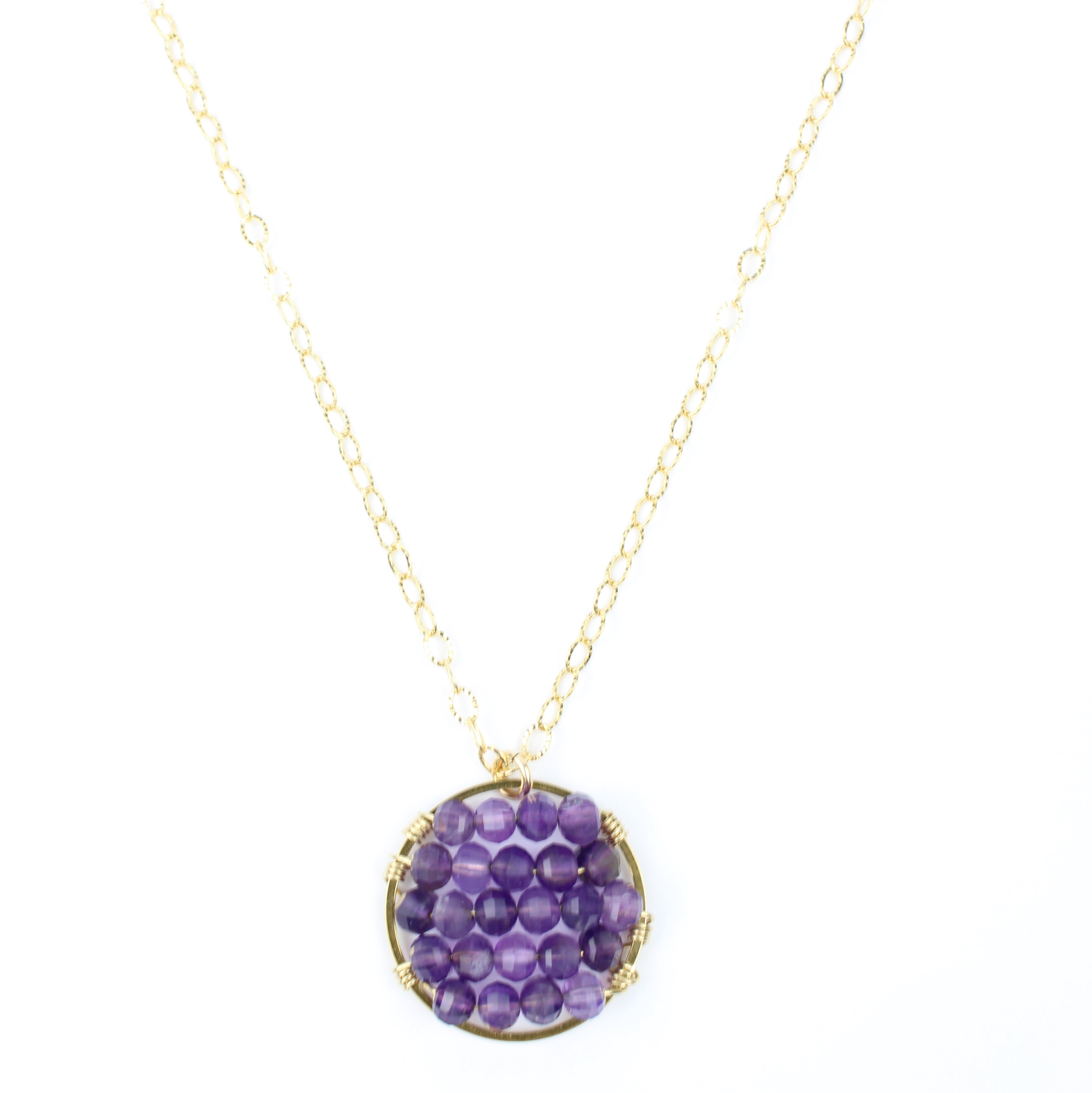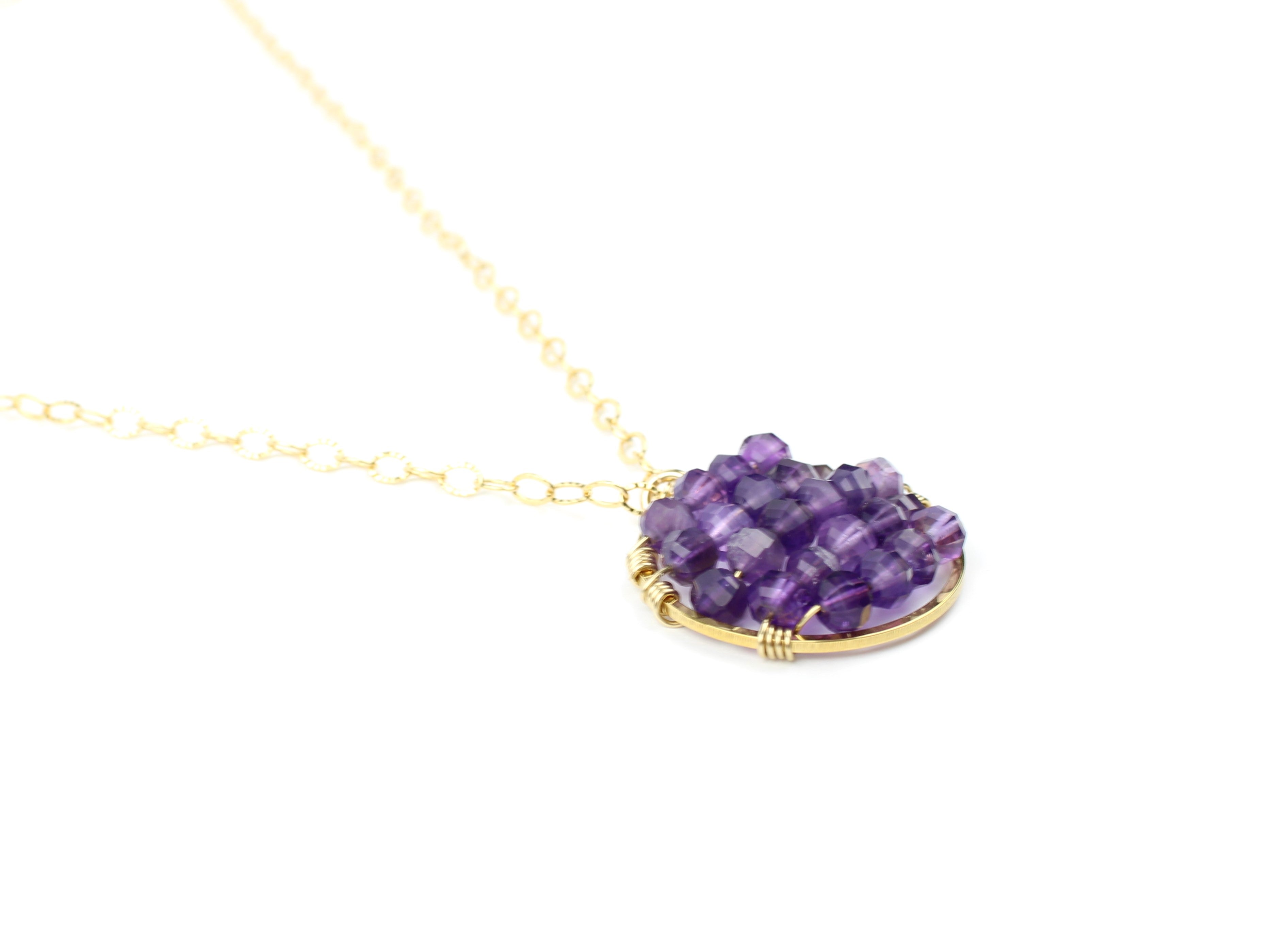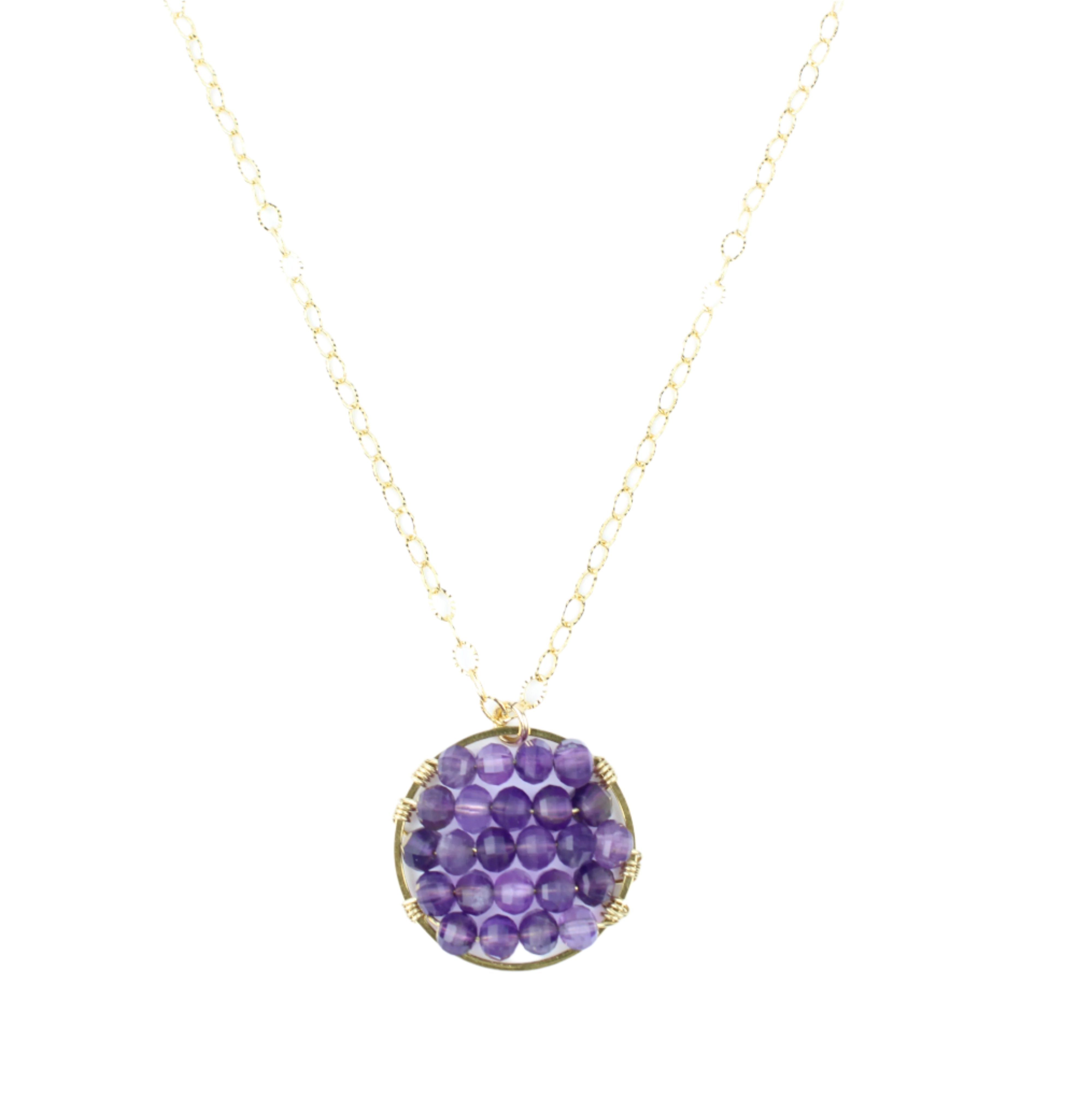Expect heads to turn when you wear this eye catching purple pendant. This piece features a beautiful tiny faceted Amethyst gemstone wrapped in gold-filled wire. Perfect to wear a stand-alone piece or pair it with any of our pieces to complete the look.