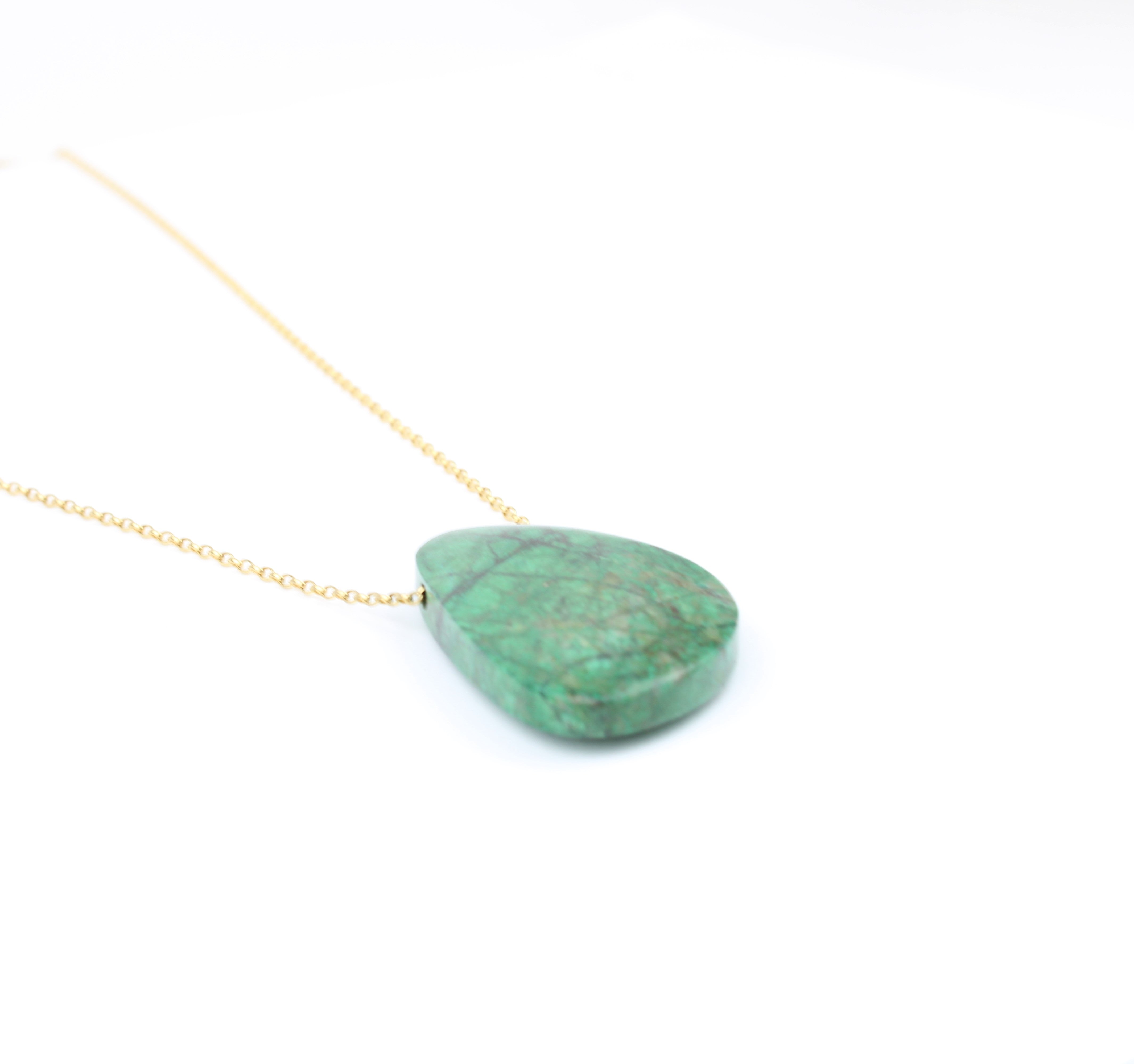 Adorn yourself with this necklace and let the natural beauty of greens to enhance your look. You will be mesmerized by the enchanting nature views this stone has to offer! Ideal for layering or to wear as a solitaire.