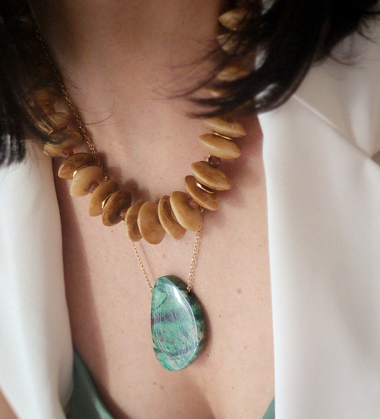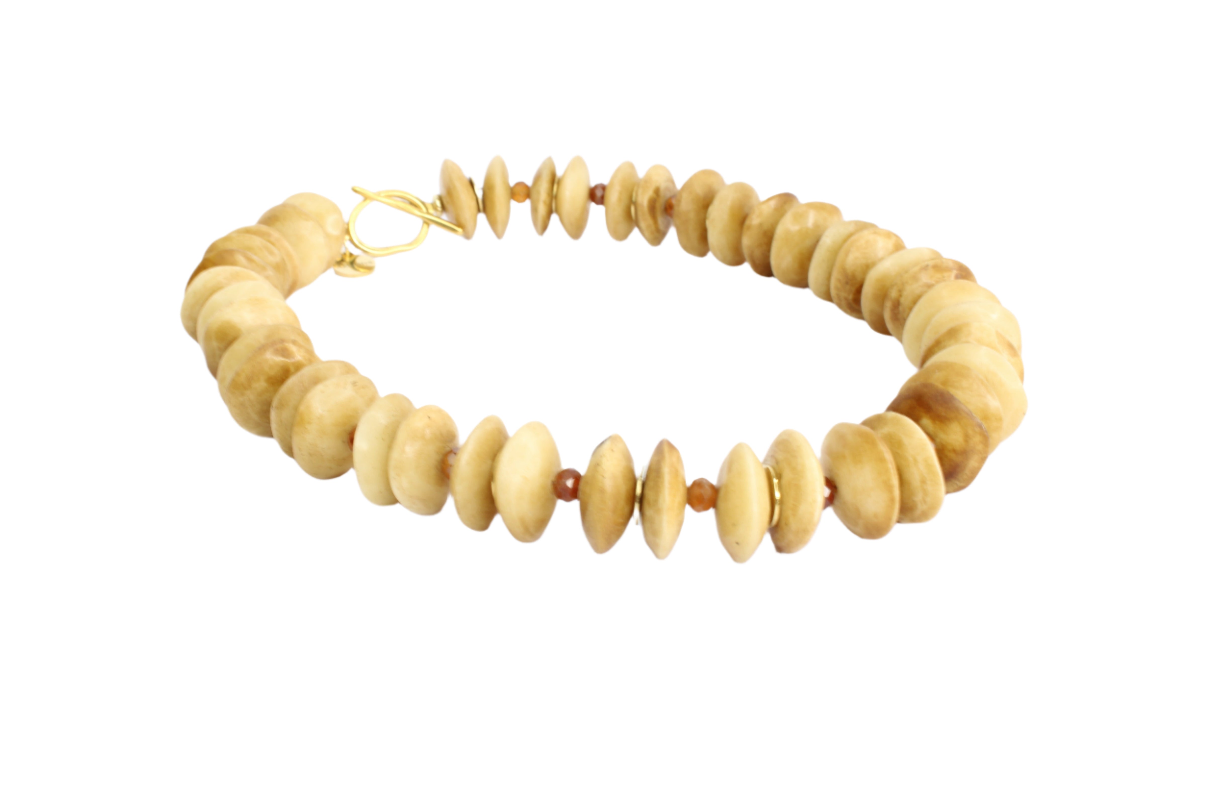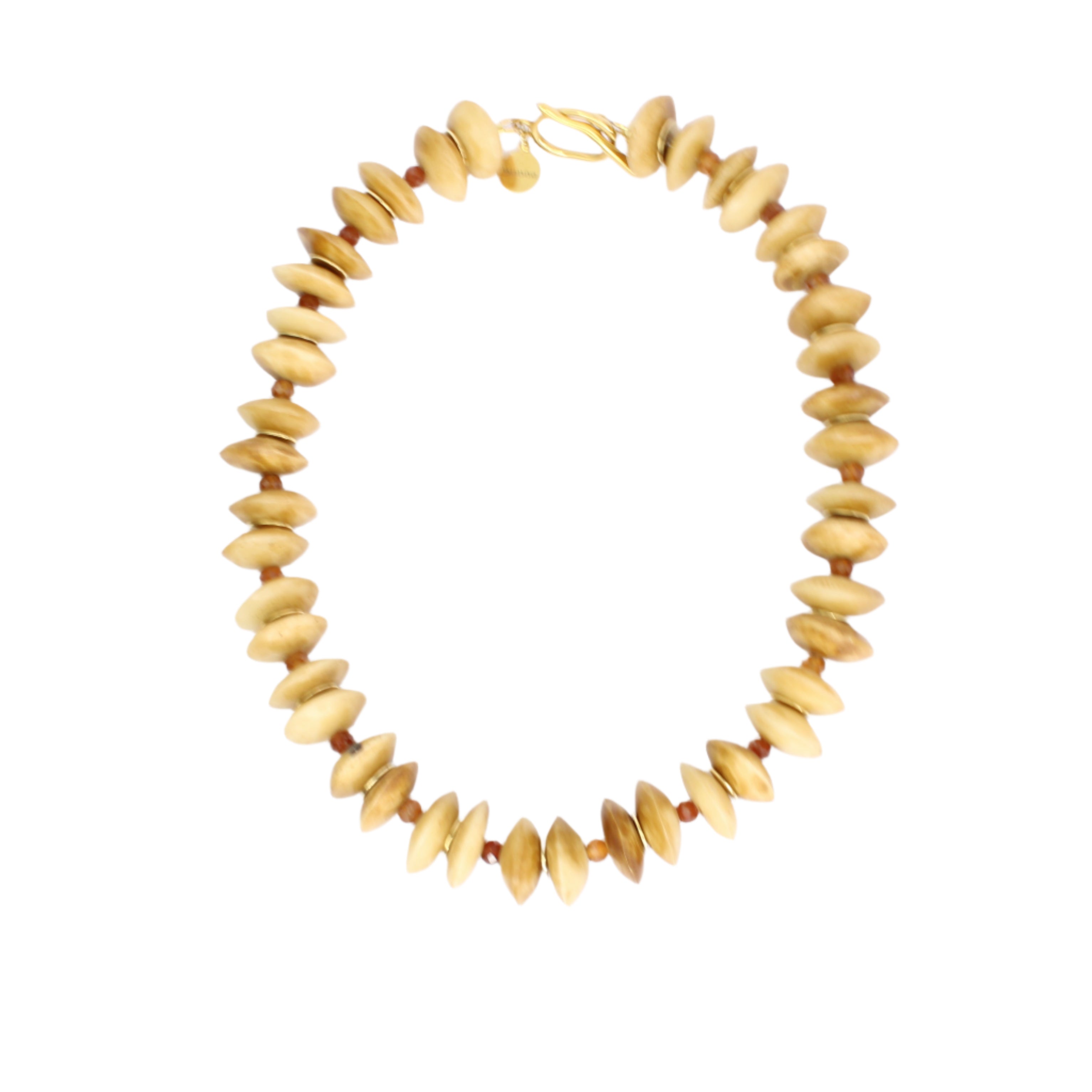 Make a striking statement with our Bone and Hessonite Stone Necklace, a masterpiece that combines luxurious gemstones and a contemporary design. The vibrant hues of hessonite — a rich, reddish-brown garnet — perfectly complement the strength and depth of the bone stones, creating a truly unique and captivating piece. The necklace exudes both boldness and sophistication, making it an ideal accessory for those who love to stand out with style.