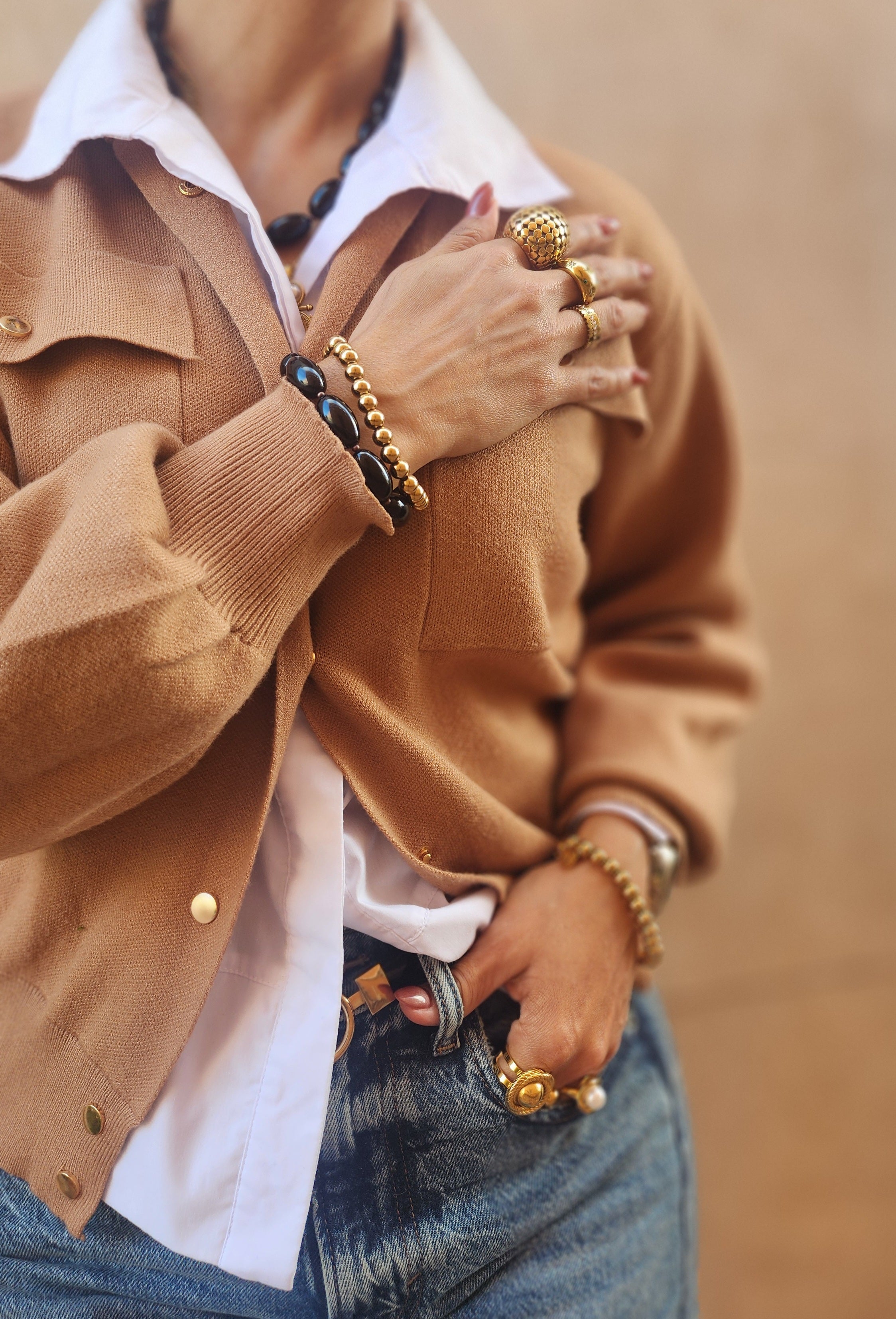 Our collections are designed to be worn together or mixed matched. Weather you're missing metals or sticking with just one; loving a statement stone or adding pops of color through you rlook, our handmade pieces bring a touch for every look and style. Shop bestsellers for more pieces to pair that won't steer your wrong.