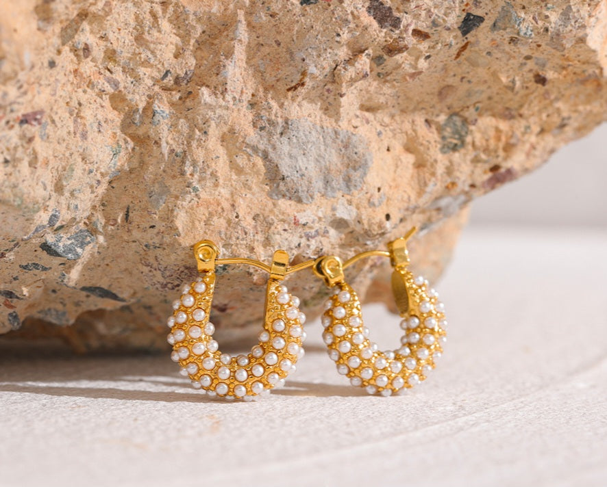 The Radiant Pearl Mini Hoops Earrings is an updated version of the classic hoop. With a cluster of pearls, it is easy to dress up or down. We are loving these earrings and their unique shape! Offer a stunning take on a simple statement, ready for everyday wear. Also, make a wonderful gift for your loved one!