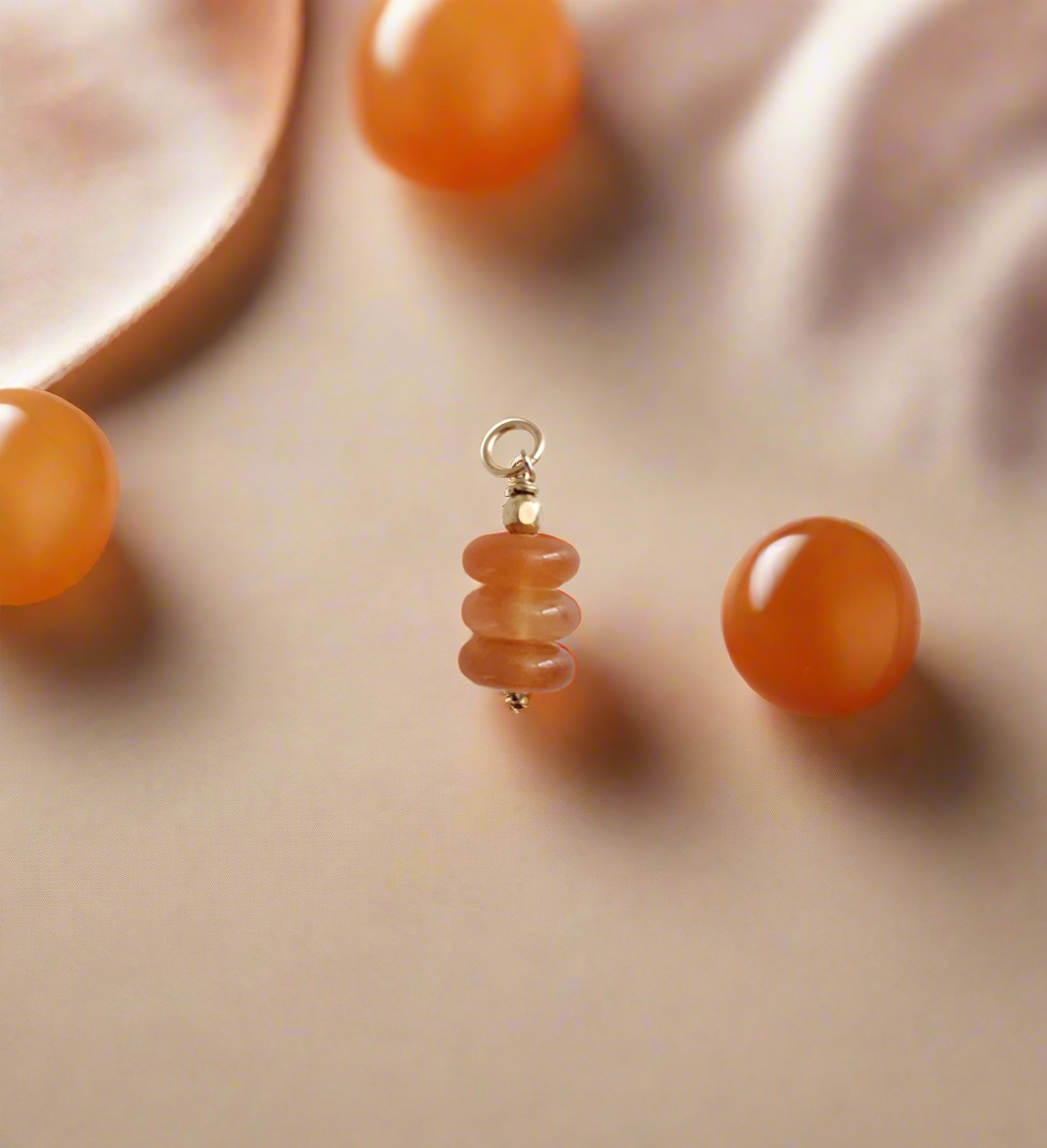 Embrace the calming energy of nature with our Orange Carnelian Stone Charm. This charm can be easily added to a bracelet, necklace, earring or keychain.