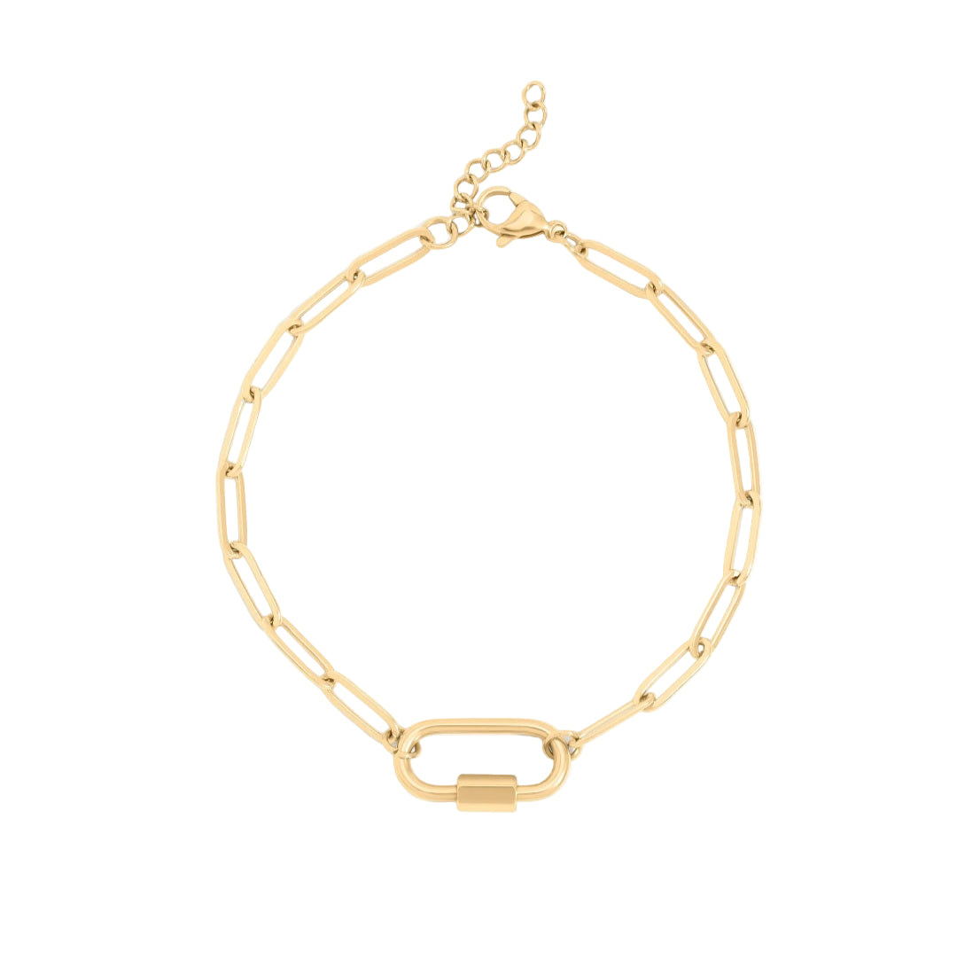 - 18K Gold PVD Stainless Steel Paperclip Charm Keeper Bracelet ( Charms not included)